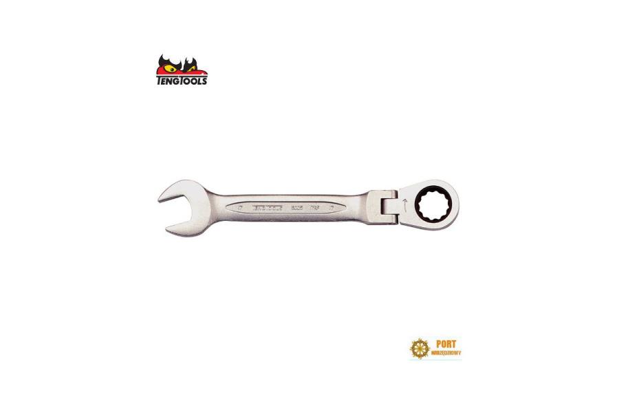 Klucz płasko-oczkowy 18mm z grzechotką łamana Teng Tools ( 131891103 ) -CDane techniczne:Rozmiar 18mmPrzegubowy klucz płasko-oczkowy z zapadką, wykonany ze stali chromowo-wanadowej. Główka oczkowa przechylna w zakresie 180°. Ten sam rozmiar na obu końcach. Prosty klucz, wymagający przełożenia na drugą stronę dla zmiany kierunku działania zapadki. Chromowany na mat.