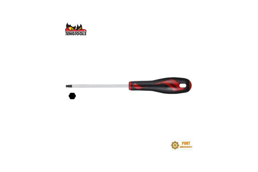 Wkrętak sześciokątny HEX 5 x 150mm z kulką Teng Tools ( 177820503 ) -CDane techniczne:Rozmiar 5mmDługość trzonu 150mmZ sześciokątną, kuliście uformowaną końcówką grota, umożliwiającą pracę przy przechyle do 30°. Trzon okrągły ze stali TT-MV PLUS. Fosfatyzowana, czarna końcówka grotu. Ergonomiczna rękojeść dwukomponentowa, z otworem do zawieszenia.